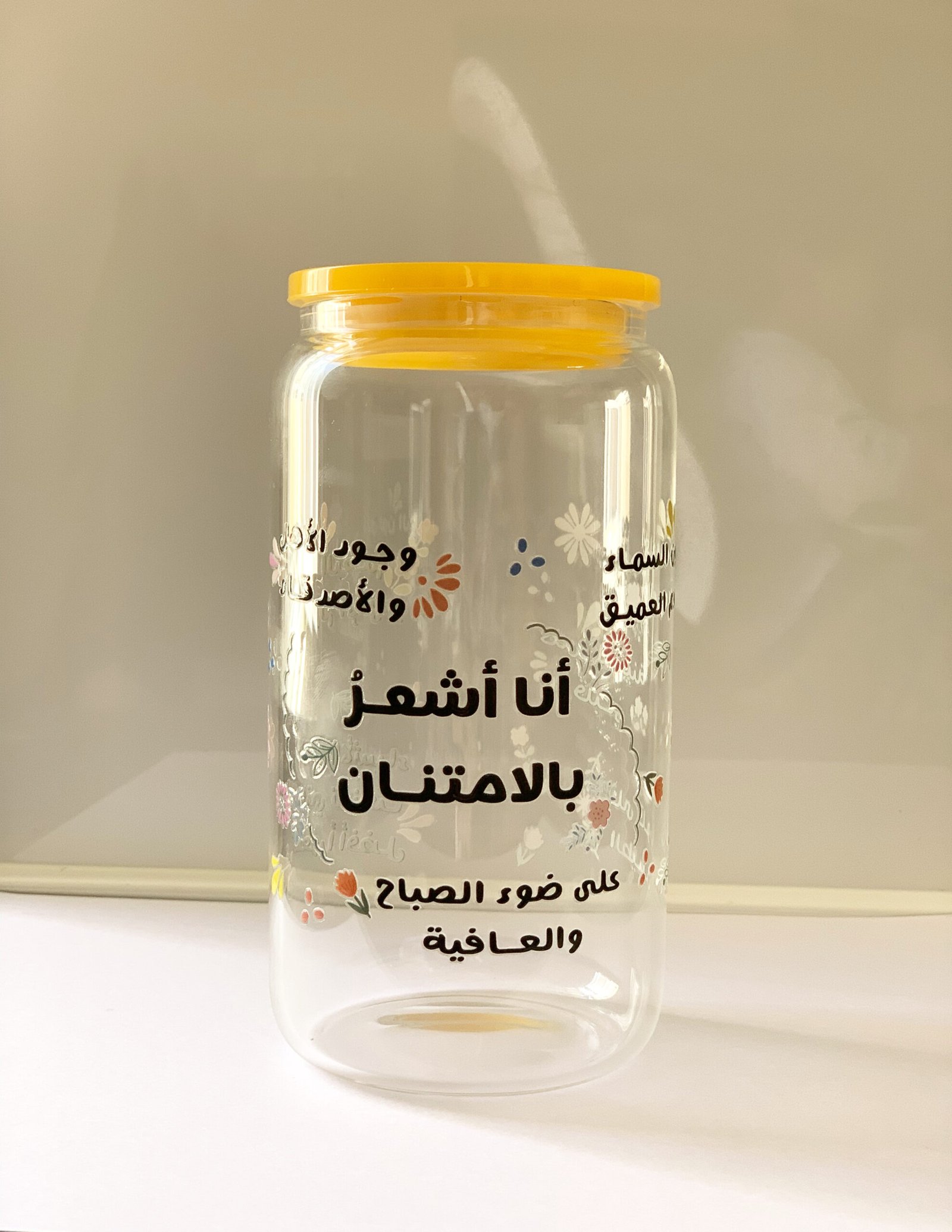 تصميم بعنوان أنا أشعر بالامتنان يضم عبارات بأشياء نمتن لها كل يوم على وجودها، الامتنان ضروري في يومنا لنشعر بقيمة الأشياء من حولنا ويزداد تقديرنا لها وايضاً ل تزيد من قناعتنا بما اعطانا ورزقنا الله به.